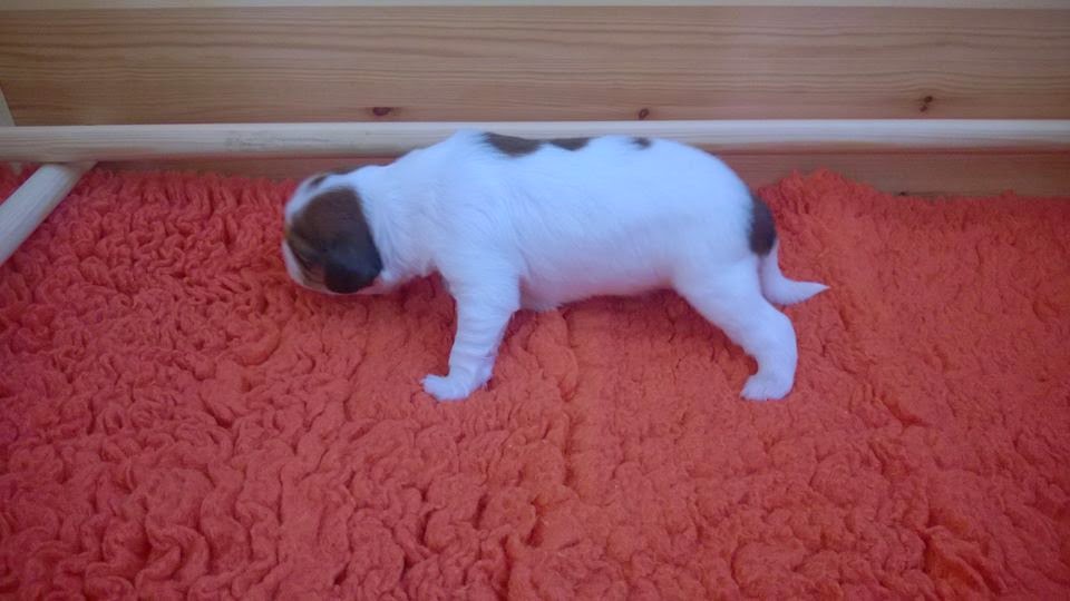 Pikkuinen alkoi availla silmiään toissapäivänä ja nyt sen orvokkisilmät ovat kokonaan auki. Isot veljet vasta tänään alkoivat kurkistella toisesta silmästään, Pilkku oikeasta ja Blondi vasemmasta. Saa nähdä, kauanko niillä menee saada silmät kunnolla auki.
